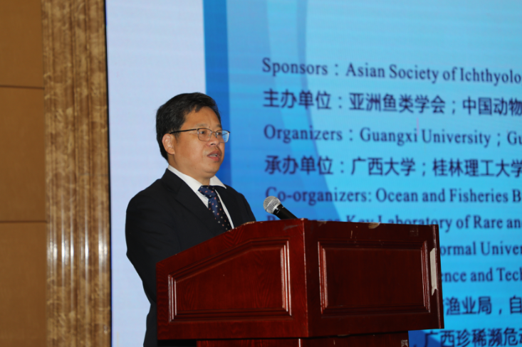 出席1130日上午开幕式并致辞的有:广西大学党委副书记、副校长吴尽昭教授,本次大会执行主席、桂林理工大学党委副书记、副校长吴志强教授,亚洲鱼类学会秘书长Larry M.Page教授, 亚洲鱼类学会理事Siti Azizah Mohd Nor教授等。开幕式由亚洲鱼类学会理事、中国科学院动物研究所赵亚辉副研究员主持。