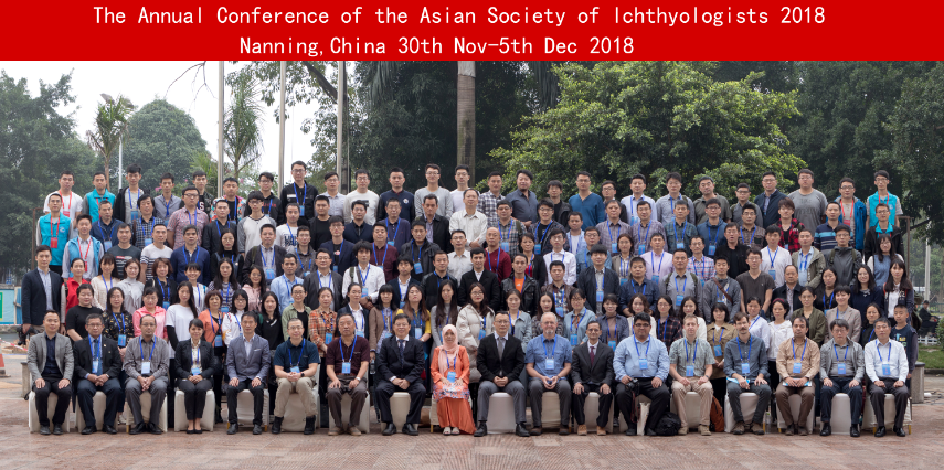 2018年亚洲鱼类学会学术年会于1130-125日在在广西南宁顺利召开。本次会议由亚洲鱼类学会和中国动物学会鱼类学分会主办,广西大学、桂林理工大学承办,广西北海市海洋与渔业局,自然资源部第四海洋研究所,珍稀濒危动植物生态与环境保护教育部重点实验室(广西师范大学),广西珍稀濒危动物生态学重点实验室,广西精工海洋科技有限公司,南宁市维也纳国际酒店(动物园店)等单位协办。亚洲鱼类学会学术年会每年举办一次,从2012年开始,分别在泰国清迈、文莱斯里巴加湾、马来西亚槟城、中国桂林、中国台北、越南胡志明市等地举办。
