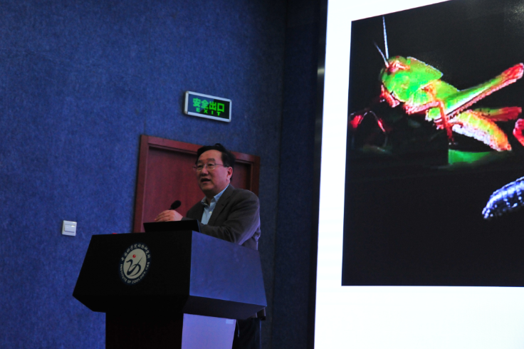 中国科学院院士、发展中国家科学院院士、中国科学院动物研究所研究员、河北大学校长、中国昆虫学会理事长康乐院士做了题为“蝗虫保护色的形成与群体防御”的精彩报告,介绍了群居型飞蝗与散居型飞蝗不同防御策略和机制,他的研究团队鉴定了β-胡萝卜素结合蛋白(βCBP)是与体色变化相关的靶标,这项工作发表在Nature Communications上。康乐院士的研究将基因组学、进化生物学和生态学完美得融合在一起,他的研究成果也是“中国科学院改革开放四十年”的四十项优秀成果之一。
