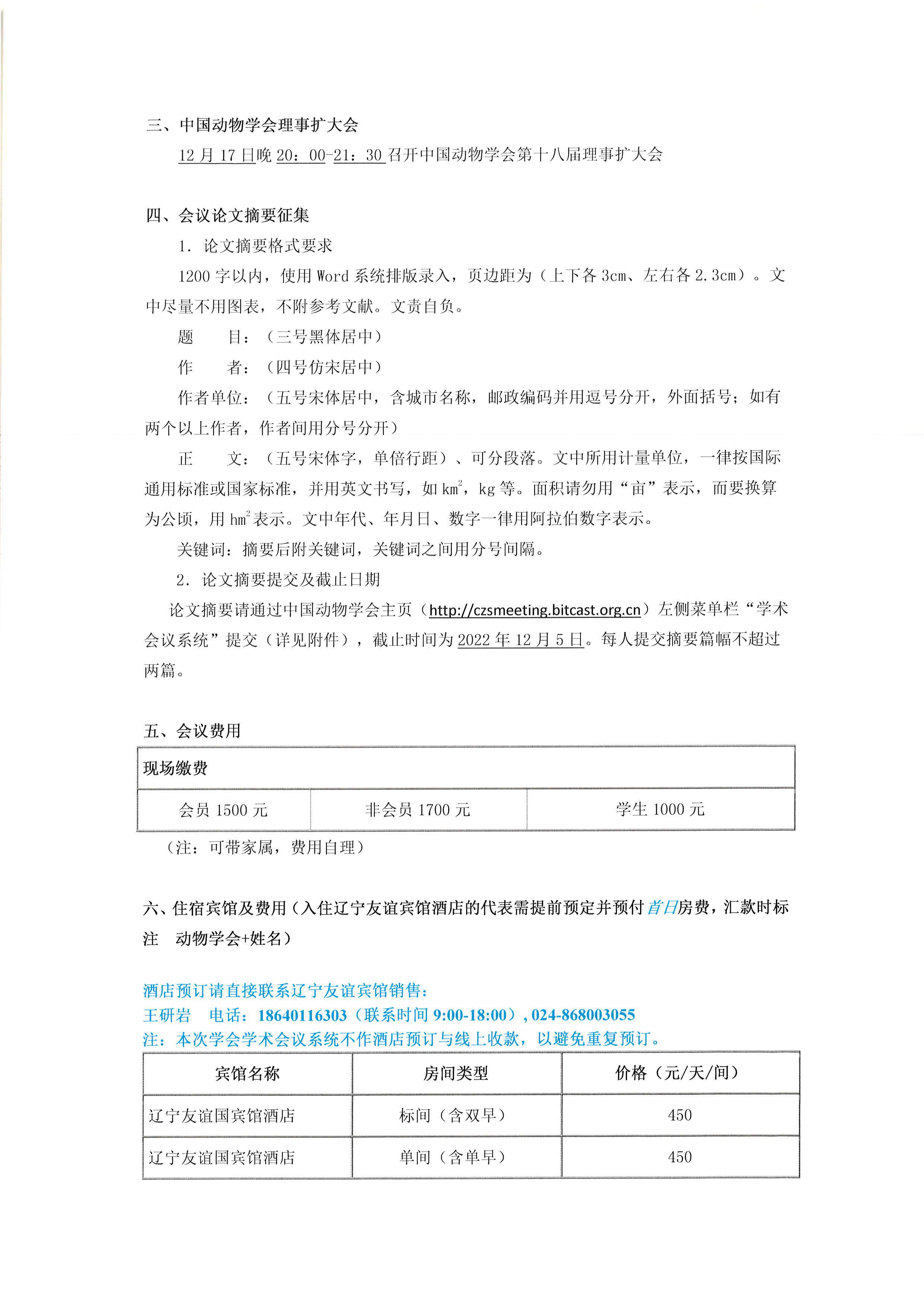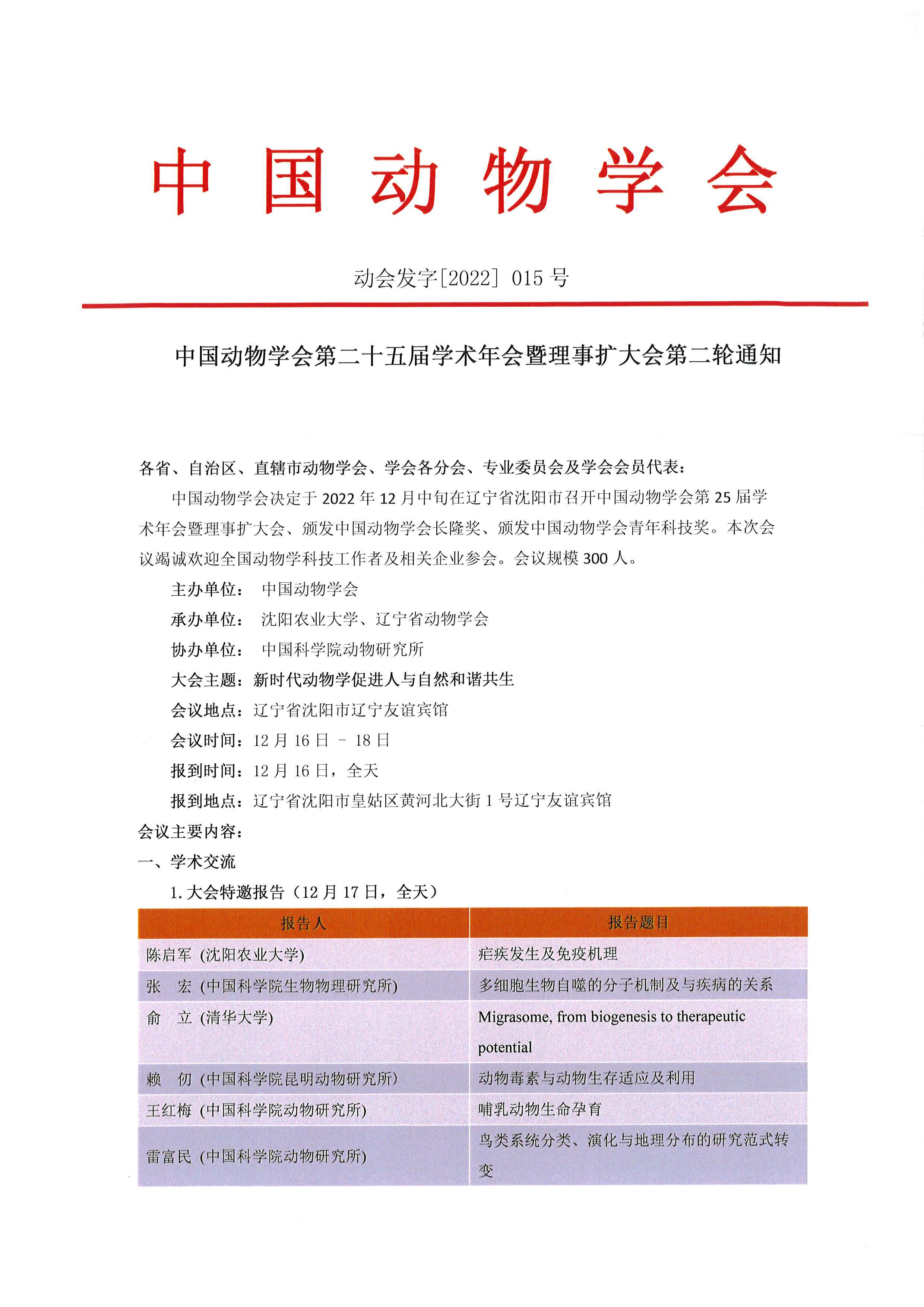 中国动物学会第二十五届学术年会暨理事扩大会第二轮通知