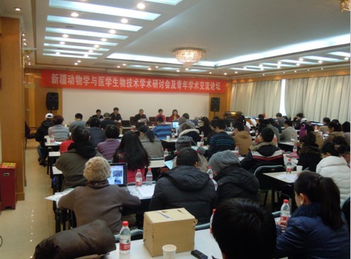 中国动物学会、新疆动物学会、新疆生物资源基因工程重点实验室、新疆重大疾病医学重点实验室和新疆畜牧科学院生物技术中心为了服务动物学科技工作者,提升会员的科研和教学水平,于2012年12月1日在新疆大学举行了会员日活动——新疆动物学与医学生物技术学术研讨会暨青年学术论坛,此次活动的目的是为了适应生命科学发展的趋势和特点,通过交流推动多学科的交叉研究,促进基础研究与应用研究的交流与合作。自治区科协学会部于江丽副部长和新疆动物学会理事长、新疆生物资源基因工程重点实验室主任张富春教授在开幕式上作了热情洋溢的讲话。新疆动物学会张富春理事长在讲话中提到新疆动物学会长期以来始终将学术交流作为学会的首要工作,学会积极为会员组织有针对性的各类学术研讨会,举办专题性学术讲座,基本做到每年召开一次学术交流会,以增进会员之间的交流。此次会议重点围绕“新疆动物资源的保护利用以及生物技术在医学和畜牧学中的应用”方面的研究进展和最新成果进行交流与研讨。